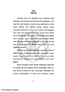 Alam semesta memiliki berbagai bentuk kehidupan baik berupa flora maupun fauna, unsur biotik ataupun abiotik. Manusia hidup di dalam lingkungan yang saling bersentuhan dengan alam lingkungannya, sehingga banyak seniman yang terinspirasi untuk menciptakan karya seni mengambil ide dari alam semesta ini. Demikian juga penulis, dalam mengambil tema untuk karya Tugas Akhir ini, tidak jauh dari lingkup fauna, yaitu "Burung Merak Sebagai Sumber Inspirasi Penciptaan Karya Seni Kriya Logam". Burung merak adalah salah satu satwa yang dilindungi di Indonesia yang populasinya makin lama makin berkurang karena habitatnya makin sempit digeser oleh peradapan manusia yang semakin mempersempit ruang hidup satwa secara umum, burung merak sering diburu oleh manusia untuk dijadikan komoditi tanpa mempertirobangkan keseimbangan ekosistem dan kelestariannya. Karena memang burung merak mempunyai warna bulu dan ekor yang indah dan anggun sehingga menjadikan burung merak memiliki harga ekonomi yang menjanjikan. Dalam perwujudan karya Tugas Akhir 1Ill, penulis menggunakan bahan baku plat tembaga 0,6 mm. Teknik yang digunakan yaitu teknik wudulan dan teknik kenteng. Karya yang dihasilkan berbentuk panel dua dimensi dan dibingkai dengan pigura dengan tujuan menambah keindahan karya itu sendiri dan berfungsi untuk melindungi karya dari benturan yang mungkin teIjadi, serta menambah keserasian antara ruang dan karya.