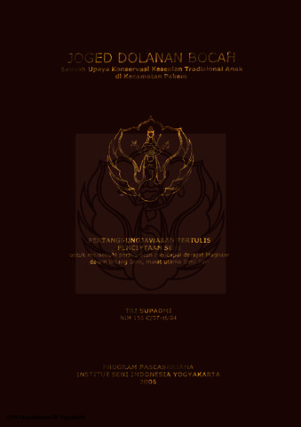 Tri Supadmi, Tri Supadmi (2006) Joged Dolanan Bocah. Masters thesis, Institut Seni Indonesia Yogyakarta.