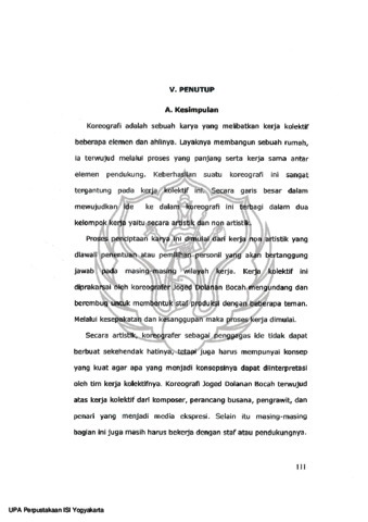 Perubahan masyarakat dan kebudayaan adalah suatu hal yangsangat alami dan tidak mungkin dicegah prosesnya. Sehinggatidaklah realistis jika untuk mempertahankan keberadaan permainanana k-anak t ra disiona l, proses perubahan tersebut lantas harusdicegah prosesnya . Berbagai hal yang turut mempercepat surutnyapermainan anak-anak tradisional dari panggung anak-anak sekarangadalah kondisi dan perubahan yang tidak mung kin dihindari ataudicegah . Kecuali jika memang ada perhatian, perencanaan sertatindakan yang se rius untuk mempertahankan berbagai j enispermainan anak tersebut dengan memberikan fasilitas-fasilitas ataumembentuk situasi dan kondisi yang membuat berbagai permainananak tersebut hidup kembali.Melihat situasi dan kondisi yang memprihatinkan terutama bagipermainan tradisional anak di wilayah tempat tinggal dan seka ligustempat kelahiran penulis di Pakem, besar keinginan penulis untukmenghidupkan kembali permainan anak tradisional dengan caramembuat koreografi dolanan anak dalam garap koreografilingkungan. Melakukan negoisasi dengan lingkungan, yaitu menjalindialog dengan ruang, merespon sega la sesuatu yang ada di situataupun menyerap potensi-potensi yang ada di alam sekitar untukmemperkaya unsur-unsur pertunjukannyaProses awal yang dilakukan adalah dengan membentuk situa sidan kondisi yang membuat berbagai macam jenis permainan anaktradisional hidup kembali. Anak-anak diperkenalkan denganberbagai macam permainan kemudian melatih mereka untukbermain. Proses selanjutnya ada lah menciptakan gerak-gerak yangterinspirasi dari permainan tersebut serta dari lagu-Iagu dolanan anak, hal ini juga dimaksudkan untuk mengenalkan lagu-Iagu tradisional anak yang jarang mereka dengarkan dan bahkan belum pernah mereka dengarkan.Metode yang ditawarkan Hawkins dipandang cocok dalam proses kreatifitas yang dapat dicapai melalui berbagai fase, yaitumerasakan, menghayati, mengkhayalkan, mengejawantahkan, danmemberi bentuk. Sehingga terciptalah Joged Dolanan Bocah ini.