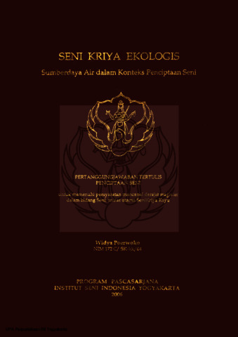 Widya, Poewoko (2006) Seni Kriya Ekologis; Sumber Air Dalam Konteks Penciptaan Seni. Masters thesis, Institut Seni Indonesia Yogyakarta.