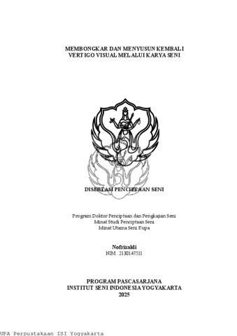 Nofrizaldi, Nofrizaldi (2025) Membongkar Dan Menyusun Kembali Vertigo Visual Melalui Karya Seni. Doctoral thesis, Institut Seni Indonesia Yogyakarta.