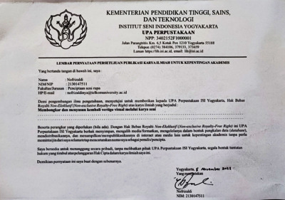| Department: | KODEPRODI91001#PENCIPTAAN DAN PENGKAJIAN SENI | |||||||||