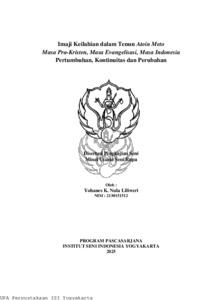 Penelitian ini bertolak dari pentingnya memahami imaji keilahian dalam tenun Atoin Meto sebagai bagian dari ekspresi budaya visual yang hidup dan dinamis. Dalam konteks masyarakat Timor, tenun bukan sekadar artefak tekstil, melainkan medium spiritual dan simbolik yang memuat narasi keilahian lintas zaman. Tujuan penelitian ini adalah untuk menelusuri perkembangan visual imaji keilahian dari Masa Pra-Kristen, Masa Evangelisasi, hingga Masa Indonesia, dengan memfokuskan pada karakteristik visual, makna simbolik dan mitologis, identitas budaya, serta nilai seni dan kebudayaan. Penelitian ini menggunakan pendekatan historis-interpretatif dengan metode kualitatif berbasis observasi visual, wawancara mendalam, dan kajian pustaka. Dua teori utama digunakan dalam analisis, yakni teori simbol dan mitos Roland Barthes dan teori identitas budaya Stuart Hall, serta diperkuat dengan pendekatan sejarah seni dari E.H. Gombrich. Hasil penelitian menunjukkan bahwa pada Masa Pra-Kristen, imaji keilahian dalam tenun Atoin Meto diwujudkan melalui simbol-simbol naturalistik dan animistik, merepresentasikan hubungan kosmis antara manusia dan alam. Pada Masa Evangelisasi, terjadi dialektika antara ikonografi Katolik dan ikonoklasme Protestan. Motif keilahian dalam tenun mengalami penyederhanaan simbolik atau integrasi dengan narasi iman Kristen tergantung pada pengaruh misi yang dominan. Sementara itu, pada Masa Indonesia, tenun menjadi arena ekspresi budaya yang lebih terbuka dan profan, dengan motif lama yang dimodifikasi sebagai penanda identitas etnis dalam konteks nasional. Sintesis teori Barthes dan Hall menunjukkan bahwa simbol-simbol keilahian terus mengalami transformasi makna sesuai konteks sosial dan kultural, mencerminkan jiwa zaman yang terekam dalam artefak visual. Penelitian ini menyimpulkan bahwa imaji keilahian dalam tenun Atoin Meto tidak hanya mengalami kontinuitas visual, tetapi juga transformasi makna yang dipengaruhi oleh perjumpaan budaya dan dinamika teologis. Imaji ini merepresentasikan spiritualitas, identitas, dan narasi kolektif masyarakat Atoin Meto. Tenun menjadi arsip visual yang hidup dan terus berevolusi, memperlihatkan bagaimana ekspresi budaya lokal dapat bertahan dan menyesuaikan diri dalam arus perubahan sosial, agama, dan kebangsaan.