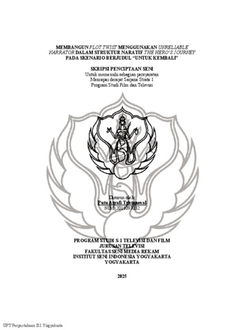 Membangun Plot Twist Menggunakan Unreable Narrator Dalam Struktur Naratif The Hero's Journey Pada Skenario Berjudul " Untuk Kembali". (deposited 15 Dec 2025 05:04)