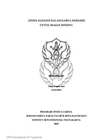 Puspita Sari, Cindy (2025) Zinnia Elegans Dalam Karya Keramik Untuk Hiasan Dinding. Skripsi thesis, Institut Seni Indonesia Yogyakarta.