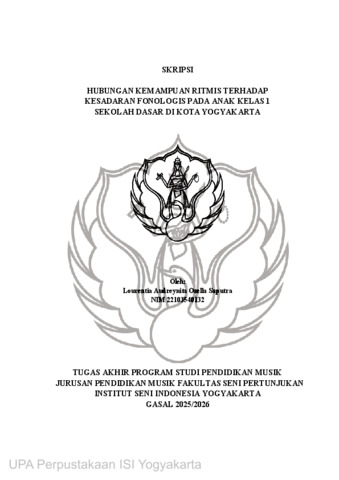 Audreynita Osella Saputra, Lourentia (2026) Hubungan Kemampuan Ritmis Terhadap Kesadaran Fonologis Pada Anak Kelas 1 Sekolah Dasar Di Kota Yogyakarta. Skripsi thesis, Institut Seni Indonesia Yogyakarta.