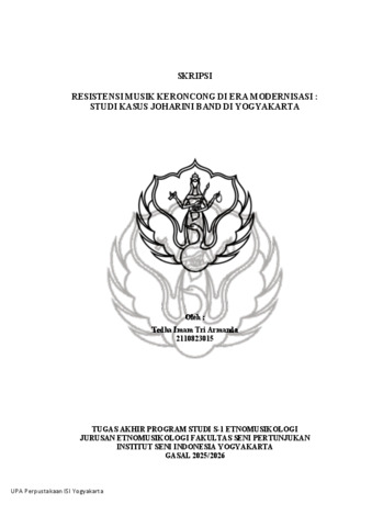 Imam Tri Armanda, Tedha (2026) Resistensi Musik Keroncong Di Era Modernisasi : Studi Kasus Joharini Band Di Yogyakarta. Skripsi thesis, Institut Seni Indonesia Yogyakarta.