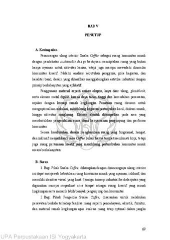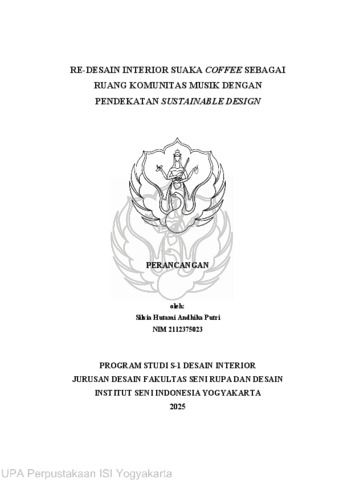 Hutami Andhika Putri, Silvia (2025) Re-Desain Interior Suaka Coffee Sebagai Ruang Komunitas Musik Dengan Pendekatan Sustainable Design. Skripsi thesis, Institut Seni Indonesia Yogyakarta.