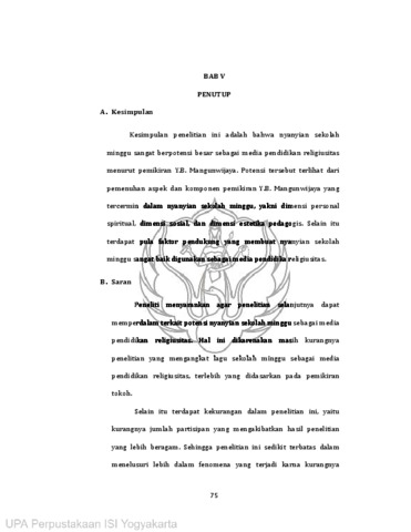 Julianus Janggo, Vinsentius (2026) Potensi Nyanyian Sekolah Minggu Sebagai Media Pendidikan Religiusitas Menurut Pemikiran Y.B. Mangunwijaya. Skripsi thesis, Institut Seni Indonesia.
