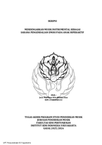 Martiano Wicaksono Dias, Jose (2026) Mendengarkan Musik Instrumental Sebagai Sarana Pengendalian Emosi Pada Anak Hiperaktif. Skripsi thesis, Institut Seni Indonesia.