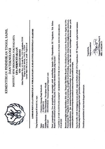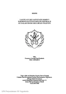 Ganang Panji Sembodo, Fransesco (2026) "Cantica In Die Nativitatis Domini": Subordinasi Fitur Populer-Minimalis Pada Idiom Gregorian-Polifoni. Skripsi thesis, Institut Seni Indonesia Yogyakarta.
