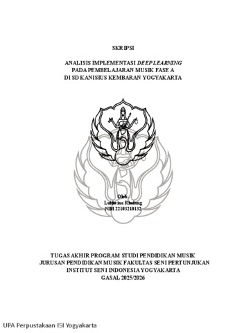 Rindang, Luidwina (2026) Analisis Implementasi Deep Learning pada Pembelajaran Musik Fase A di SD Kanisius Kembaran Yogyakarta. Skripsi thesis, Institut Seni Indonesia Yogyakarta.