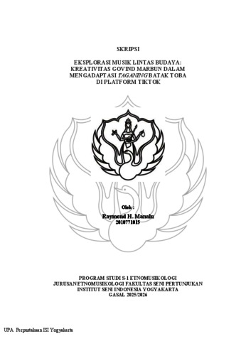 H. Manalu, Raymond (2026) Eksplorasi Musik Lintas Budaya: Kreativitas Govind Marbun Dalam Mengadaptasi Taganing Batak Toba Di Platform Tiktok. Skripsi thesis, Institut Seni Indonesia Yogyakarta.