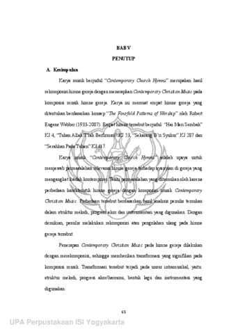 Aezereel Sinaga, Bravo (2026) “Contemporary Church Hymns” Penerapan Contemporary Christian Music Dalam Rekomposisi Himne Gereja. Skripsi thesis, Institut Seni Indonesia Yogyakarta.