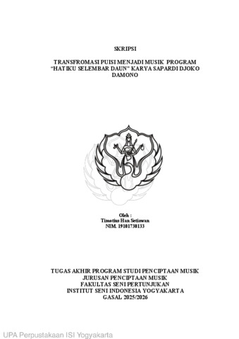 Han Setiawan, Timotius (2026) Transfromasi Puisi Menjadi Musik Program “Hatiku Selembar Daun” Karya Sapardi Djoko Damono. Skripsi thesis, Institut Seni Indonesia Yogyakarta.