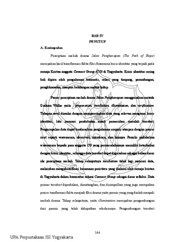 Maria, Agnes (2025) Penciptaan Naskah Drama Jalan Pengharapan (The Path Of Hope): Eksplorasi Krisis Identitas Remaja Kristen Pada Komunitas Connect Group Di Yogyakarta. Skripsi thesis, Institut Seni Indonesia Yogyakarta.