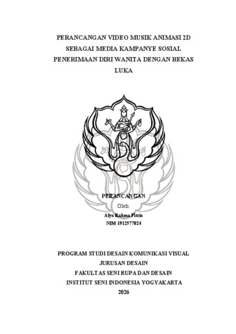 Rahma Fitria, Alya (2026) Perancangan Video Musik Animasi 2d Sebagai Media Kampanye Sosial Penerimaan Diri Wanita Dengan Bekas Luka. Skripsi thesis, Institut Seni Indonesia Yogyakarta.