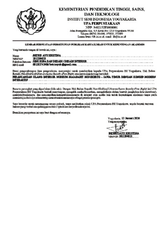 Ayu Kristina, Betris (2026) Perancangan Ulang Interior Museum Majapahit Mojokerto - Jawa Timur Dengan Konsep Modern Interaktif. Skripsi thesis, Institut Seni Indonesia Yogyakarta.