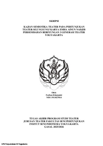 Khumaini, Farhan (2026) Kajian Semiotika Teater Pada Pertunjukan Teater Mlungsungi Karya Emha Ainun Nadjib Persembahan Reriyungan 3 Generasi Teater Yogyakarta. Skripsi thesis, Institut Seni Indonesia Yogyakarta.