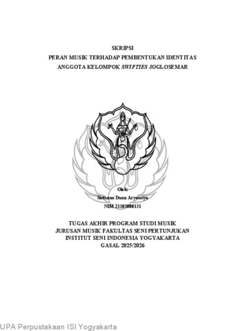 Danu Aryosatyo, Stefanus (2026) Peran Musik Terhadap Pembentukan Identitas Anggota Kelompok Swifties Joglosemar. Skripsi thesis, Institut Seni Indonesia Yogyakarta.