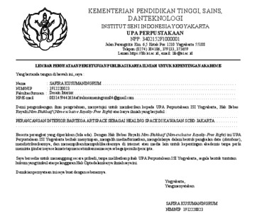 | Divisions: | Fakultas Seni Rupa > Jurusan Disain > Disain Interior | |||||||||
