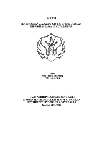 Fitriadi Sihombing, Aidil (2025) Pertunjukan Kuli Kontrak Ketoprak Dor dan Hibriditas Jawa di Kota Medan. Skripsi thesis, Institut Seni Indonesia Yogyakarta.
