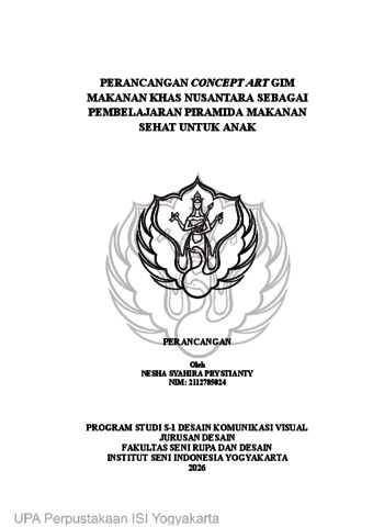 Syahira Prystianty, Nesha (2025) Perancangan Concept Art Gim Makanan Khas Nusantara sebagai Pembelajaran Piramida Makanan Sehat untuk Anak. Skripsi thesis, Institut Seni Indonesia Yogyakarta.