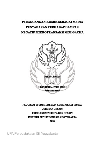 Febriantika Sari, Dwi (2025) Perancangan Komik Sebagai Media Penyadaran Terhadap Dampak Negatif Mikrotransaksi Gim Gacha. Skripsi thesis, Institut Seni Indonesia Yogyakarta.