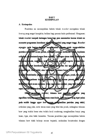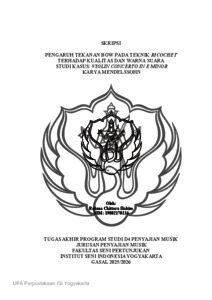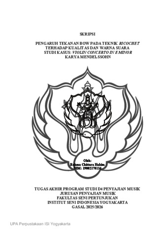 Hakim, Rahma (2026) Pengaruh Tekanan Bow Pada Teknik Ricochet Terhadap Kualitas Dan Warna Suara Studi Kasus: Violin Concerto In E Minor Karya Mendelssohn. Skripsi thesis, Institut Seni Indonesia Yogyakarta.
