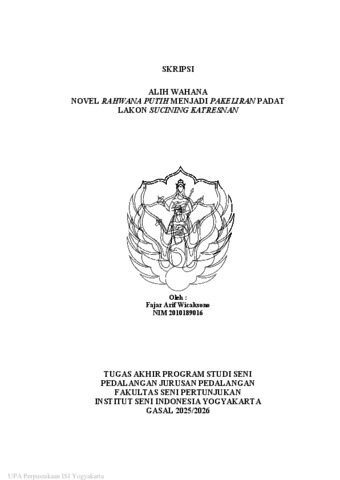 | Divisions: | Fakultas Seni Pertunjukan > Jurusan Pedalangan | |||||||||