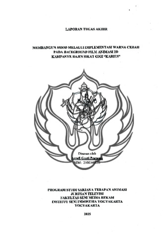Gusti Pratama, Arrafi (2025) Membangun Mood melalui Implementasi Warna Cerah pada Background Film Animasi 2D Kampanye Rajin Sikat Gigi “Karies”. Skripsi thesis, Institut Seni Indonesia Yogyakarta.