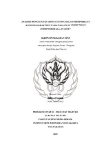 Penelitian dengan judul “Analisis Penggunaan Cross-cutting Dalam Memperkuat Konflik Karakter Utama Pada Film “Everything Everywhere All at Once”” bertujuan untuk mengkaji bagaimana Teknik editing cross-cutting dapat memperkuat konflik yang dihadapi oleh karakter utama dalam film “Everything Everywhere All at Once”. Penelitian ini menggunakan pendekatan kualitatif deskriptif dengan metode analisis naratif dan sinematik. Pengambilan data dilakukan dengan cara observasi terhadap film “Everything Everywhere All at Once” dengan menonton film secara keseluruhan untuk mengidentifikasi dan melakukan breakdown struktur naratif dan konflik utama yang dihadapi karakter film serta mengidentifikasi penggunaan Teknik Cross-cutting yang digunakan dalam film “Everything Everywhere All at Once”. Hasil penelitian menunjukkan bahwa cross-cutting berfungsi tidak hanya sebagai teknik editing yang secara fungsional menghubungkan dua atau lebih peristiwa secara bergantian, tetapi lebih signifikan lagi, cross-cutting berfungsi sebagai perangkat naratif yang berperan penting dalam memperkuat konflik karakter utama. Melalui analisis ini, penelitian mengidentifikasi bahwa cross-cutting dalam film ini menciptakan struktur sinematik yang mempengaruhi narasi dengan cara menghadirkan perbandingan kontras antar universe, membangun simultanitas emosional, dan menunjukkan hubungan kausalitas lintas universe.