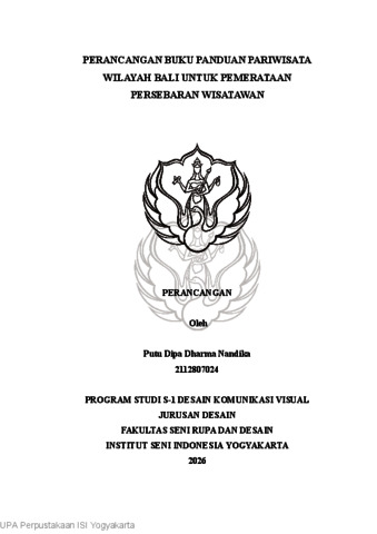 Dipa Dharma Nandika, Putu (2025) Perancangan Buku Panduan Pariwisata Wilayah Bali Untuk Pemerataan Persebaran Wisatawan. Skripsi thesis, Institut Seni Indonesia Yogyakarta.