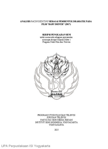Rifaldi, Alvin (2025) Analisis Pacing Editing Sebagai Pembentuk Dramatik Pada Film "Baby Driver" (2017). Skripsi thesis, Institut Seni Indonesia Yogyakarta.