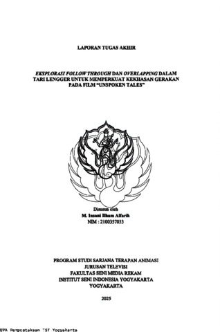 M. Insani Ilham, Alfarih (2025) Eksplorasi Follow Through Dan Overlapping Dalam Tari Lengger Untuk Memperkuat Kekhasan Gerakan Pada Film “Unspoken Tales”. Diploma thesis, Institut Seni Indonesia Yogyakarta.
