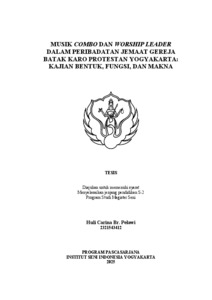 Carina Br. Pelawi, Huli (2026) Musik Combo Dan Worship Leader Dalam Peribadatan Jemaat Gereja Batak Karo Protestan Yogyakarta:Kajian Bentuk, Fungsi, Dan Makna. Masters thesis, Institut Seni Indonesia Yogyakarta.