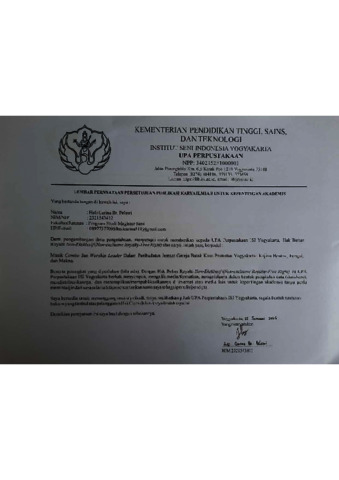 | Department: | KODEPRODI91001#PENCIPTAANDANPENGKAJIANSENI | ||||||