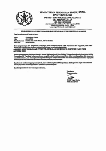 Tegar Ginola, Givian (2025) Analisis Komposisi Frame Within Frame Dalam Mendukung Suspense Pada Film Monster (2024). Skripsi thesis, Institut Seni Indonesia Yogyakarta.