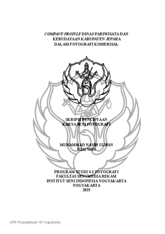 Nasih Ulwan, Muhammad (2025) Company Profile Dinas Pariwisata Dan Kebudayaan Kabupaten Jepara Dalam Fotografi Komersial. Skripsi thesis, Institut Seni Indonesia Yogyakarta.