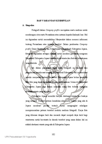 Penciptaan ini membahas penerapan fotografi company profile dalam instansi Dinas Pariwisata dan Kebudayaan Kabupaten Jepara dengan tujuan untuk memvisualisasikan profil instansi yang bergerak dalam mengelola objek wisata dan festival kebudayaan Kabupaten Jepara. Landasan teori meliputi konsep fotografi komersial sebagai perancangan konsep foto, komunikasi massa sebagai media promosi visual, serta fotografi potret dan fotografi lanskap dalam proses penciptaan karya fotografi. Penciptaan ini diharapkan dapat mengangkat potensi-potensi pariwisata Jepara, menjadi sumber informasi terkait destinasi wisata Jepara bagi wisatawan, serta referensi untuk fotografer dan peneliti lainnya dalam memberikan inovasi dalam dunia pariwisata melalui medium fotografi.