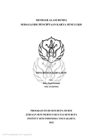 Hadi Permadi, Raka (2022) Memoar Alam Benda Sebagai Ide Penciptaan Karya Seni Lukis. Skripsi thesis, Institut Seni Indonesia Yogyakarta.